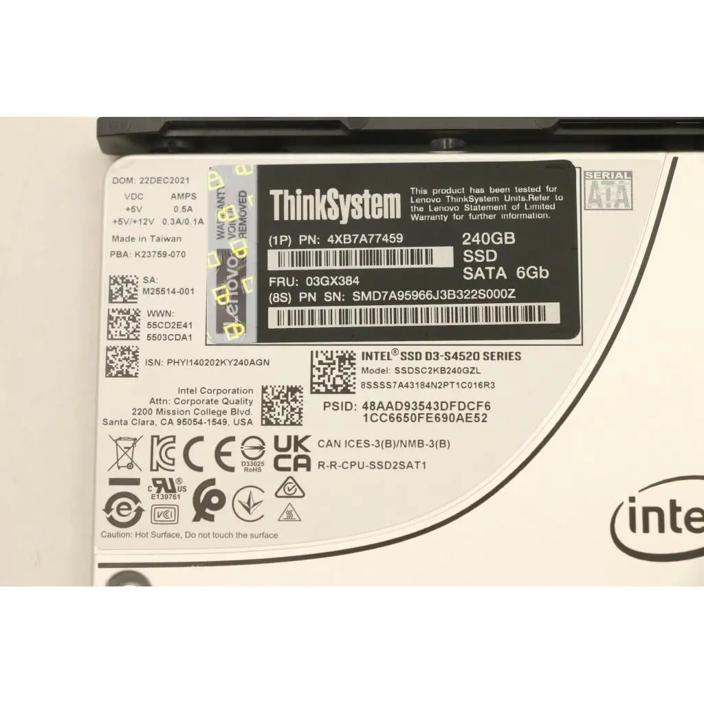 SSD Assembly, INTEL, S4520, SATA-III, 2.5″ 240GB, 6.0Gbps, NHS, self encrypting drive with tray