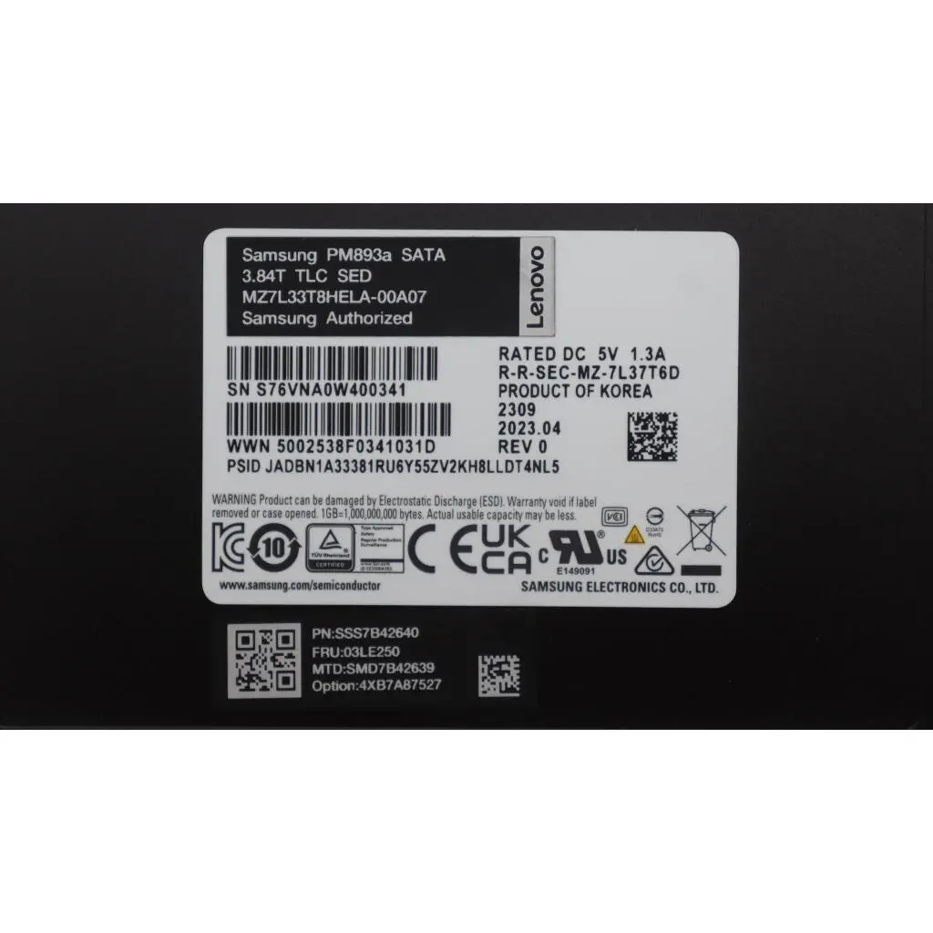 ThinkSystem 2.5″ PM893a 3.84TB Read Intensive SATA 6Gb HS SSD