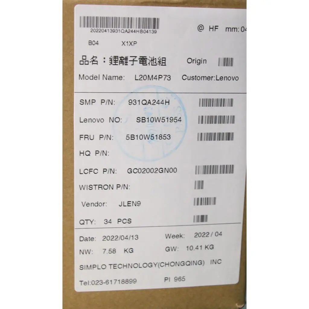 Lenovo BATTERY 4cell 54.7 Wh 15.36V